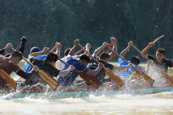 10月11日,参赛队员在融江广西柳州市融安县城段江面上举行的传统27人龙舟赛(男子组)800米直道竞速比赛中奋力划桨(谭凯兴摄) 10月11日,参赛队员在融江广西柳州市融安县城段江面上举行的传统27人龙舟赛(男子组)800米直道竞速比赛中奋力划桨。连日来,柳州市融安县举行2020柳州市职工运动会龙舟...