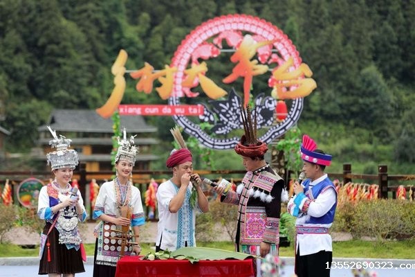 2020年9月8日,中央广播电视总台《乡村大舞台》栏目组在广西柳州市三江侗族自治县林溪镇程阳八寨景区录制节目,当地乡村艺人、达人纷纷登台献艺。 龚普康摄 非遗传承人李绍玉委员(左二...