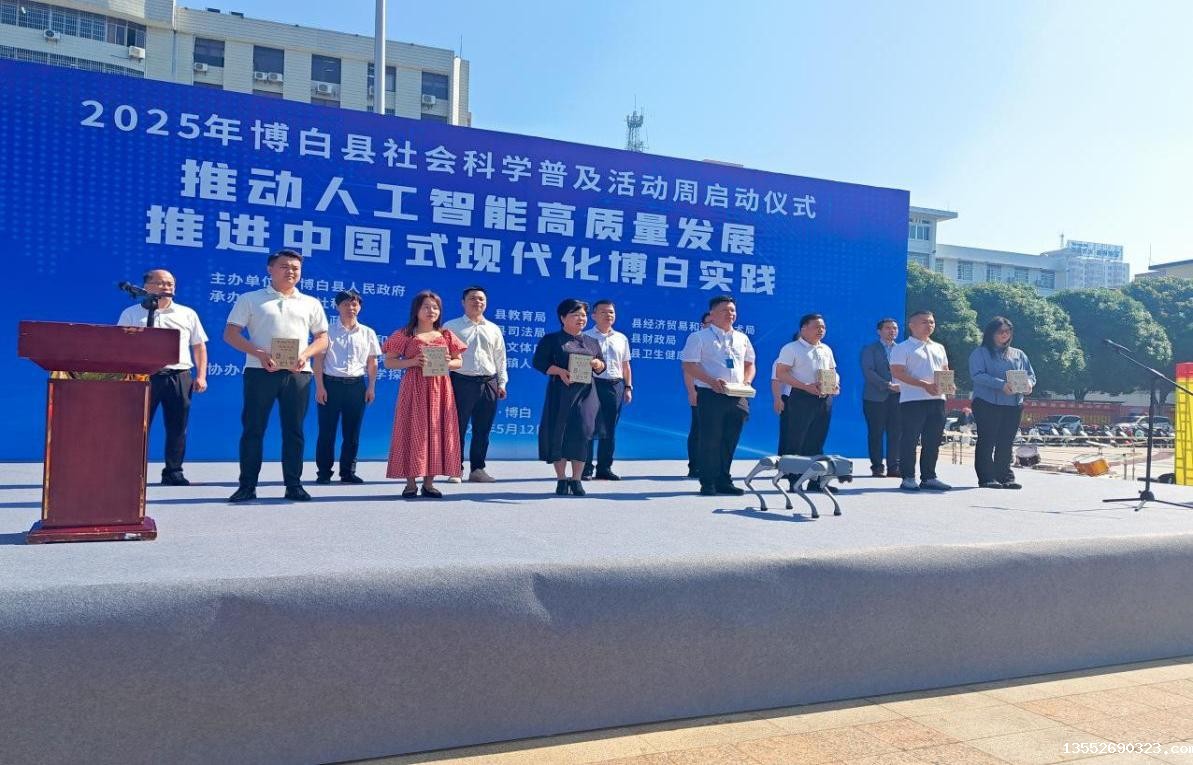 2025年5月12日上午,博白县社会科学普及活动周启动仪式在县法制文化广场举行,本次活动周以“推动人工智能高质量发展,推进中国式现代化博白实践”为主题,县委常委、副县长卢山同志出席活动并宣布活动启动。